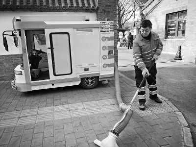 昨天下午,在白紙坊街道萬壽公園東門的便道上,環衛工人趙亞**師傅正和同伴駕駛著環衛隊新采購的吸塵車作業,并不...