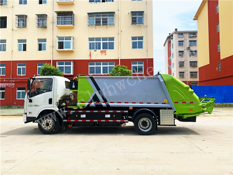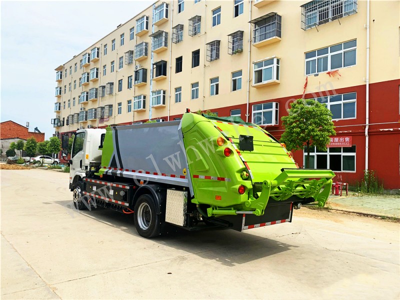 壓縮式垃圾車由密封式垃圾廂、液壓系統、操作系統組成。整車為全密封型,自行壓縮、自行傾倒、壓縮過程中的污水全部進入污水廂,較為徹底的解決了垃圾運輸過程中的二次污染的問題,避免了給人們帶來不便,關鍵部件采用進口部件,具有壓力大、密封性好、操作方便、安全等優點。 可選配后掛桶翻轉機構或垃圾斗翻轉機構。