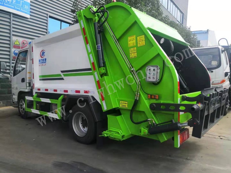 壓縮式垃圾車由密封式垃圾廂、液壓系統、操作系統組成。整車為全密封型,自行壓縮、自行傾倒、壓縮過程中的污水全部進入污水廂,較為徹底的解決了垃圾運輸過程中的二次污染的問題,避免了給人們帶來不便,關鍵部件采用進口部件,具有壓力大、密封性好、操作方便、安全等優點。 可選配后掛桶翻轉機構或垃圾斗翻轉機構。
