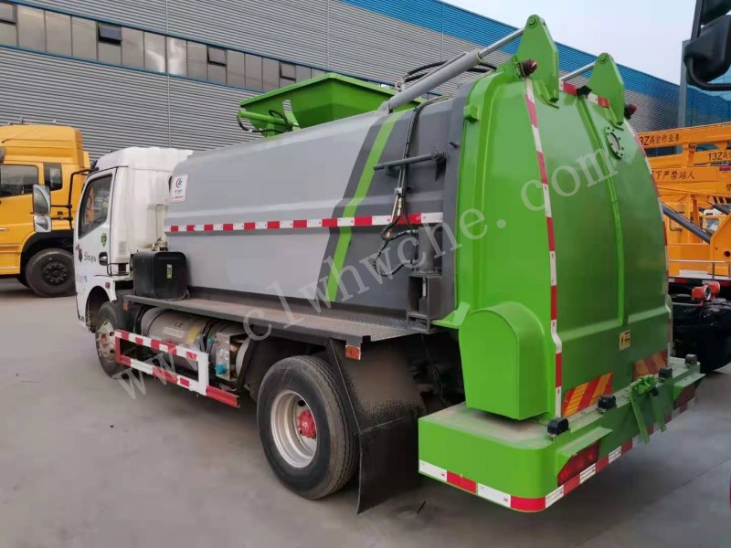 罐體采用4-5mm優(yōu)質(zhì)碳鋼制作,方形罐體,罐體前后封頭采用圓弧蝶形封頭,配拉桿式提升機(jī),可掛120/240升垃圾桶,罐體底部配雙缸液壓舉升自卸,罐體尾門液壓打開和鎖緊+手動鎖緊裝置,罐內(nèi)設(shè)固液分離裝置,罐尾設(shè)液體自流閥,液位窗,后門液壓開啟,帶工具箱,洗手裝置。