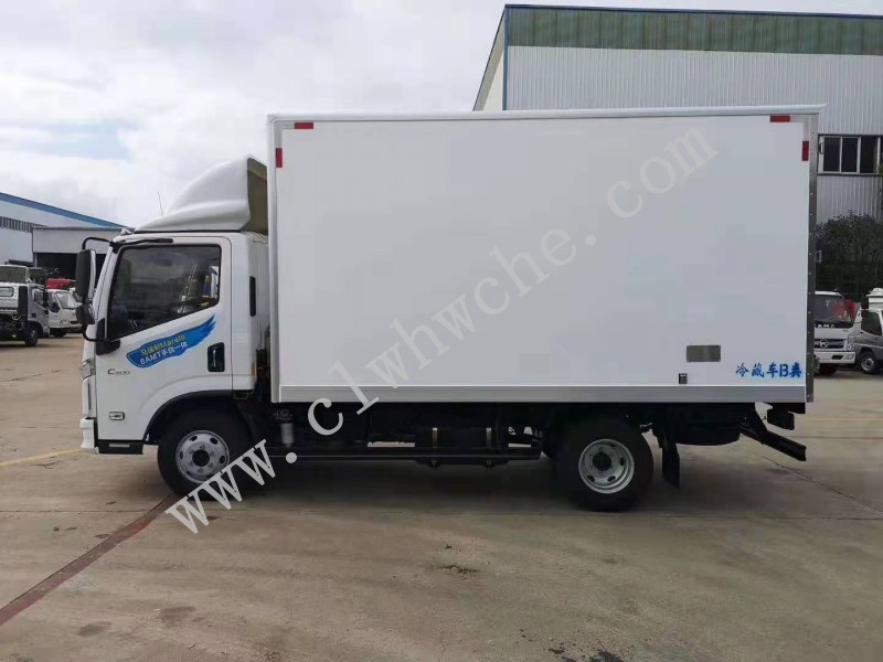 廂體全面采用優質玻璃鋼制造,樹脂膠無縫粘連,中間8CM厚聚氨酯保溫板,后門全密封雙開門,不銹鋼后門合頁及鎖件,廂體內部采用LED照明燈及廂體示寬燈,品牌專用冷機、底板為防滑花紋鋁板。