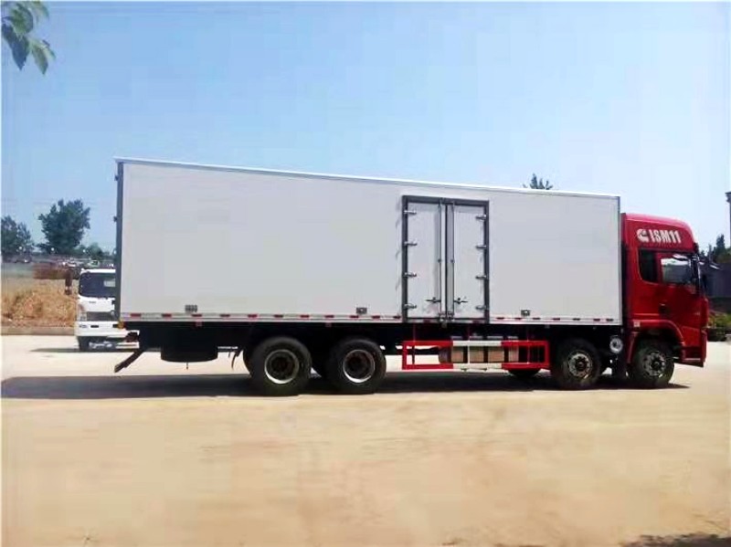 陜汽前四后八9.5米冷藏車(冷藏車)又稱為:冷凍車、保溫車、廂式貨車、防爆車、冷藏運輸車, 冷藏機組:分為**式和非**式,非**式冷藏機組利用汽車發動機動力工作,能使相匹配貨廂內**低溫度可達到零下18度。**制冷機組必須加裝**電瓶和柴油發動機,與非**式冷藏機組相比,它的制冷性能要好得多,能使相匹配貨廂內**低溫度可達到零下28度,而且不會因為汽車本身的故障原因而影響冷藏效果,但在生產造價上成本也要高些。