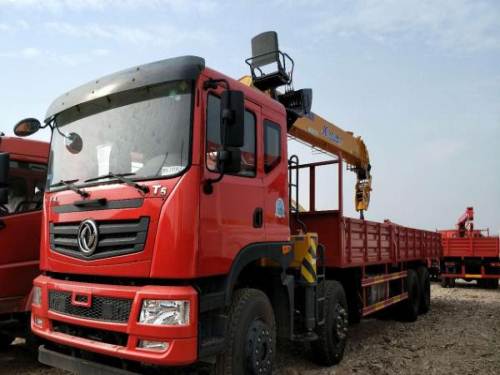 東風T5隨車吊選裝:該車可選裝徐工、三一、石煤、宏昌天馬、程力等品牌吊機,可安裝12噸、14噸、16噸吊機,貨箱部分也可以根據用戶需求進行特殊定制,加裝自卸功能等。