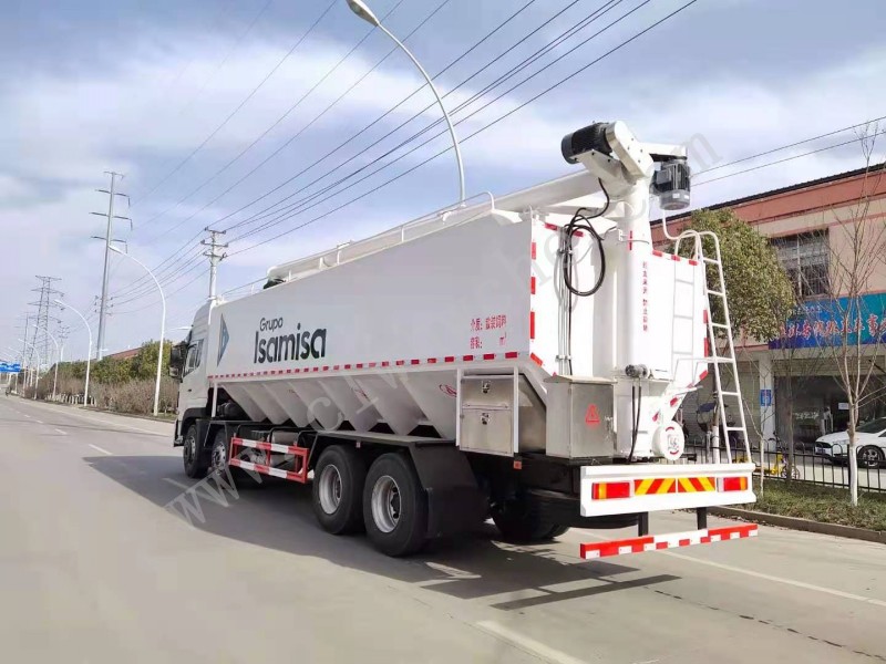 散裝飼料車,又名散裝飼料運(yùn)輸車,飼料運(yùn)輸車。結(jié)構(gòu)簡單、性能可靠、輸送量大、操控方便、機(jī)動(dòng)性強(qiáng)、對(duì)物料無污染等特點(diǎn),廣泛應(yīng)用于各大中小型養(yǎng)殖企業(yè)的飼料的運(yùn)輸。