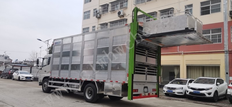 畜禽運輸車是我公司在借鑒國內外產品的基礎上,結合用戶實際需求新研發的一款運輸仔豬、生豬、雞苗等畜禽的專用功能較強的運輸車輛,是我公司傾力打造的一款專門面向活禽、牲畜運輸市場的一款高端運輸車,該款運輸車旨在增強活禽、牲畜在運輸過程中的舒適度、減少死亡率,提高運輸效率,該車配備**完善、自動化程度高。廂式畜禽運輸車可用于成品豬、生豬、豬仔、雞苗跨省運輸,全程無泄漏,有糞液收集系統箱體采用全鋁合金型材制作,質量輕、抗腐蝕性強。箱體中層安裝保溫隔板,頂部采用玻璃鋼,有效避免高溫傳導,**箱體內部溫度。車廂內部采用全液壓可調整分層結構,二層、三層、四層16欄(根據需求選擇)飲水系統,側推拉通風滑窗,帶電子排風扇,視頻監控,溫度顯示監控,中間有隔欄,每層約承重300頭仔豬的重量。車廂后部選裝垂直液壓升降尾板,更實用!